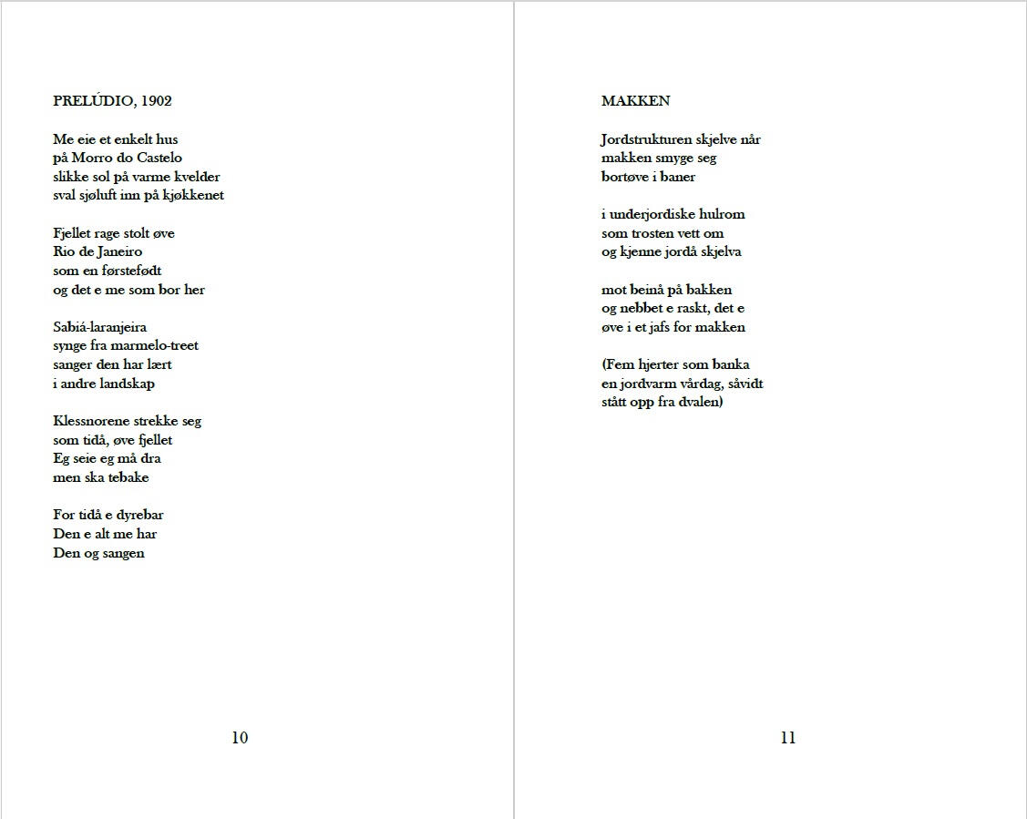 Diktboka Morro do Castelo og andre fortellinger kom ut på Bøker & Børst Forlag i 2023. Den ble kjøpt inn av Kulturrådet i januar 2024 og kan dermed lånes på alle landets biblioteker. Vil du kjøpe et eksemplar, kan du sende en melding via kontaktskjemaet her, eller ta turen til Bøker & Børst i Stavanger hvor du finner både den og andre bøker utgitt på forlaget.